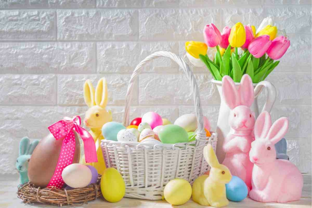 Uova decorate, coniglietti e piccoli richiami pasquali non devono essere eccessivi. Scegli pochi elementi, magari in ceramica, vetro o legno naturale, e posizionali in punti strategici della casa: su una mensola, all’ingresso o come centrotavola.